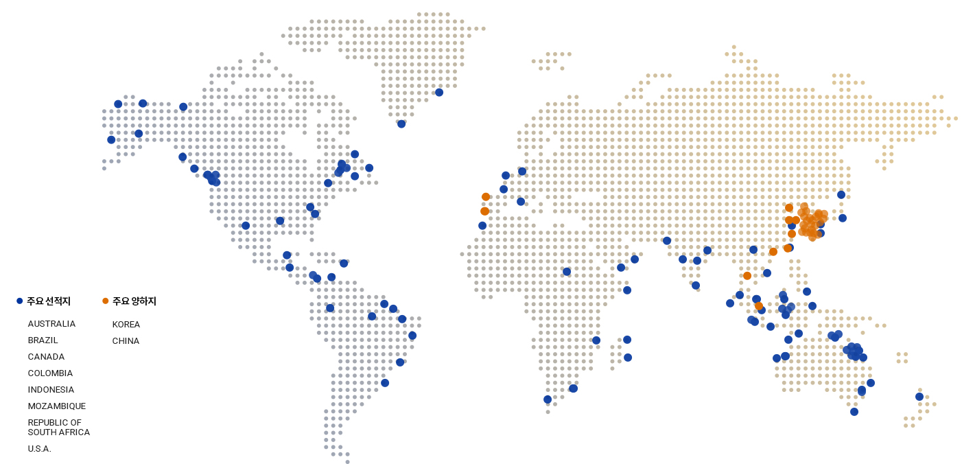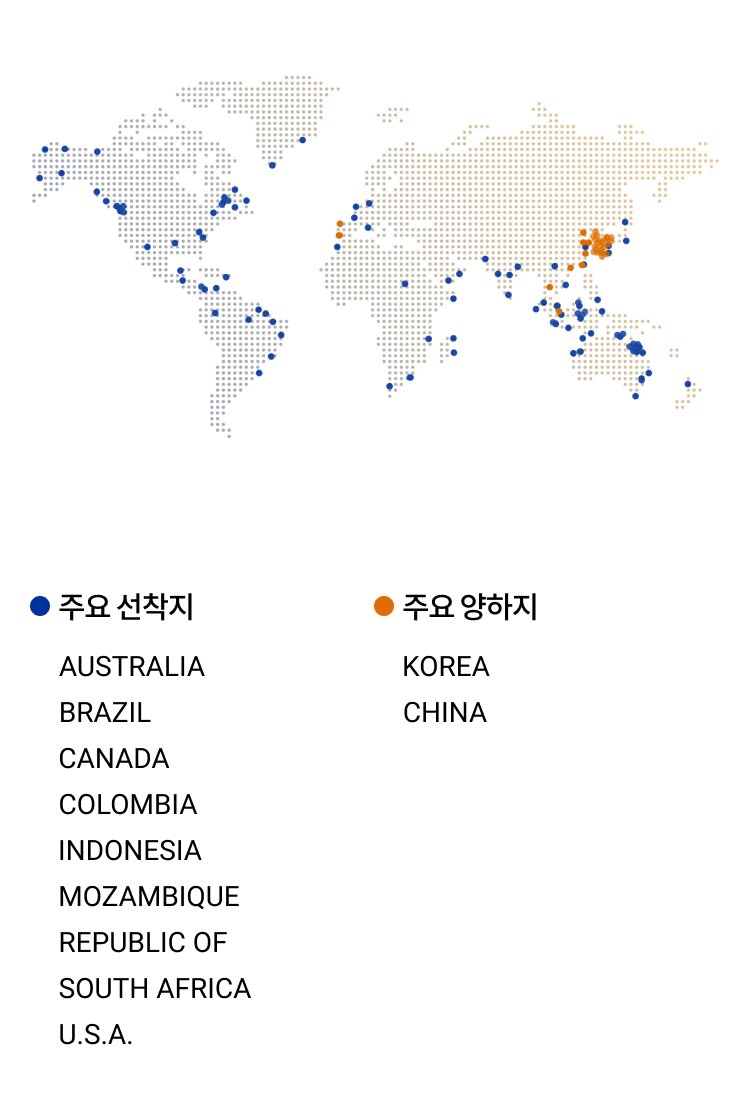 삼천포, 당진 태안 등 국가기반시설이 위치한 양하항이며 브라질 Vale사와의 장기운송계약을 수행하며 브라질 -