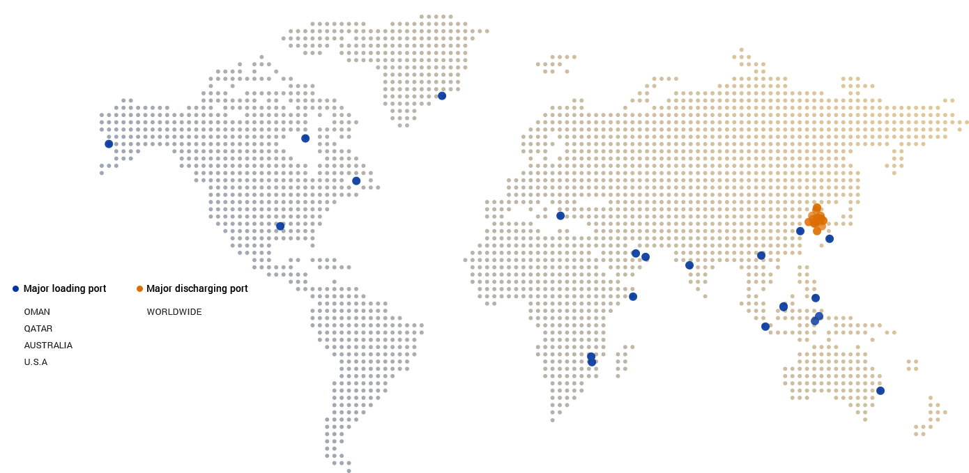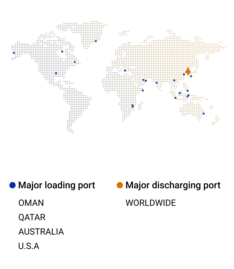 H-Line Shipping's LNG carrier service has been providing stable transportation of LNG regularly from Qalhat in Oman, Ras Laffan in Qatar, and Gladstone Port in Australia to Korea since 1995 using 7 LNG carriers (including 3 consortium vessels) under the long-term transportation contracts with KOGAS. Also, it is implementing LNG carrier world-wide trading under the long-term transportation contract with VITOL, the global trader